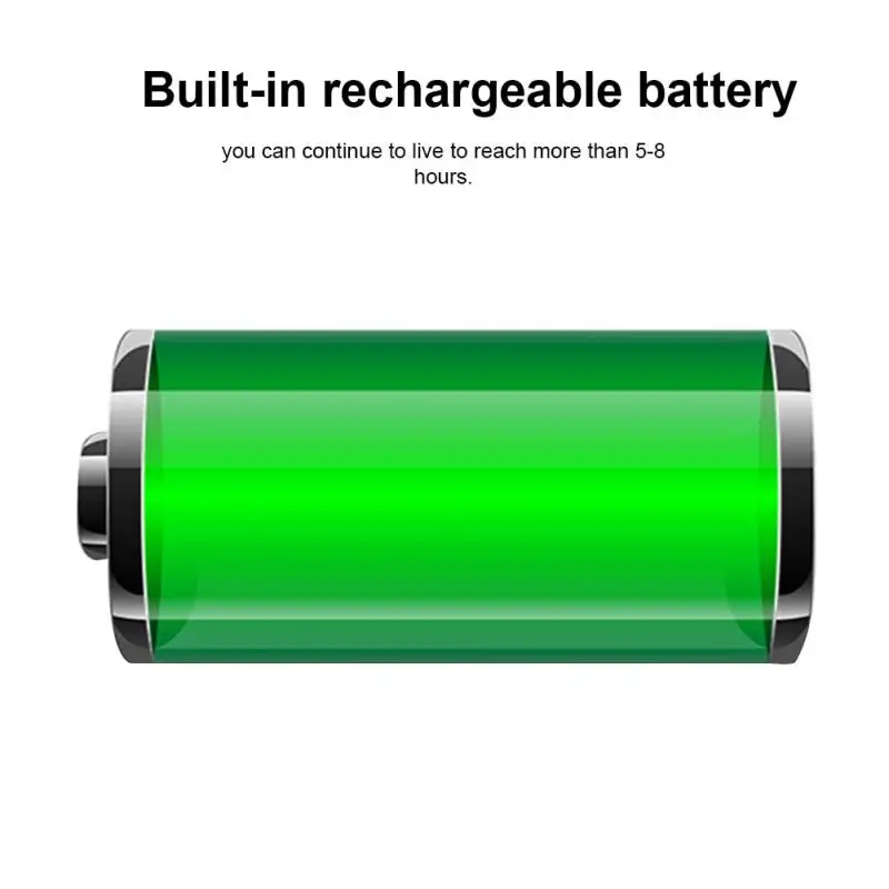 Такой же размер, как и мобильный телефон, легко носить с собой. Встроенная перезаряжаемая батарея емкостью 500 мА · ч, вы можете продолжать работать до 5-8 часов.