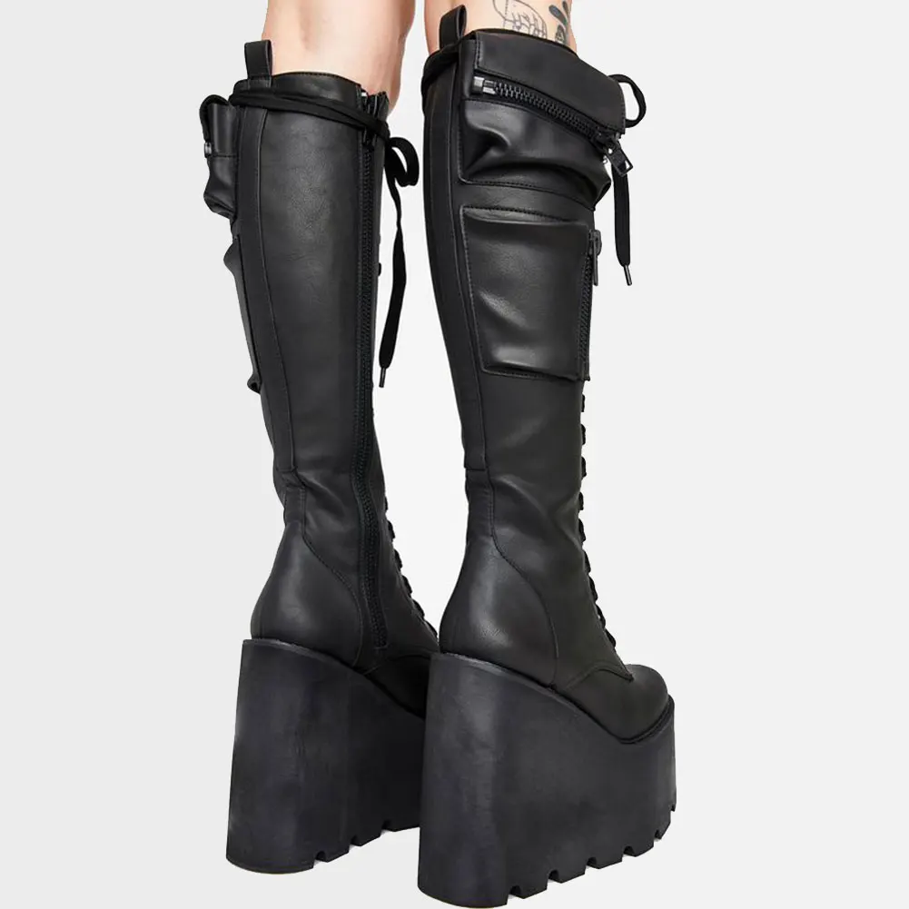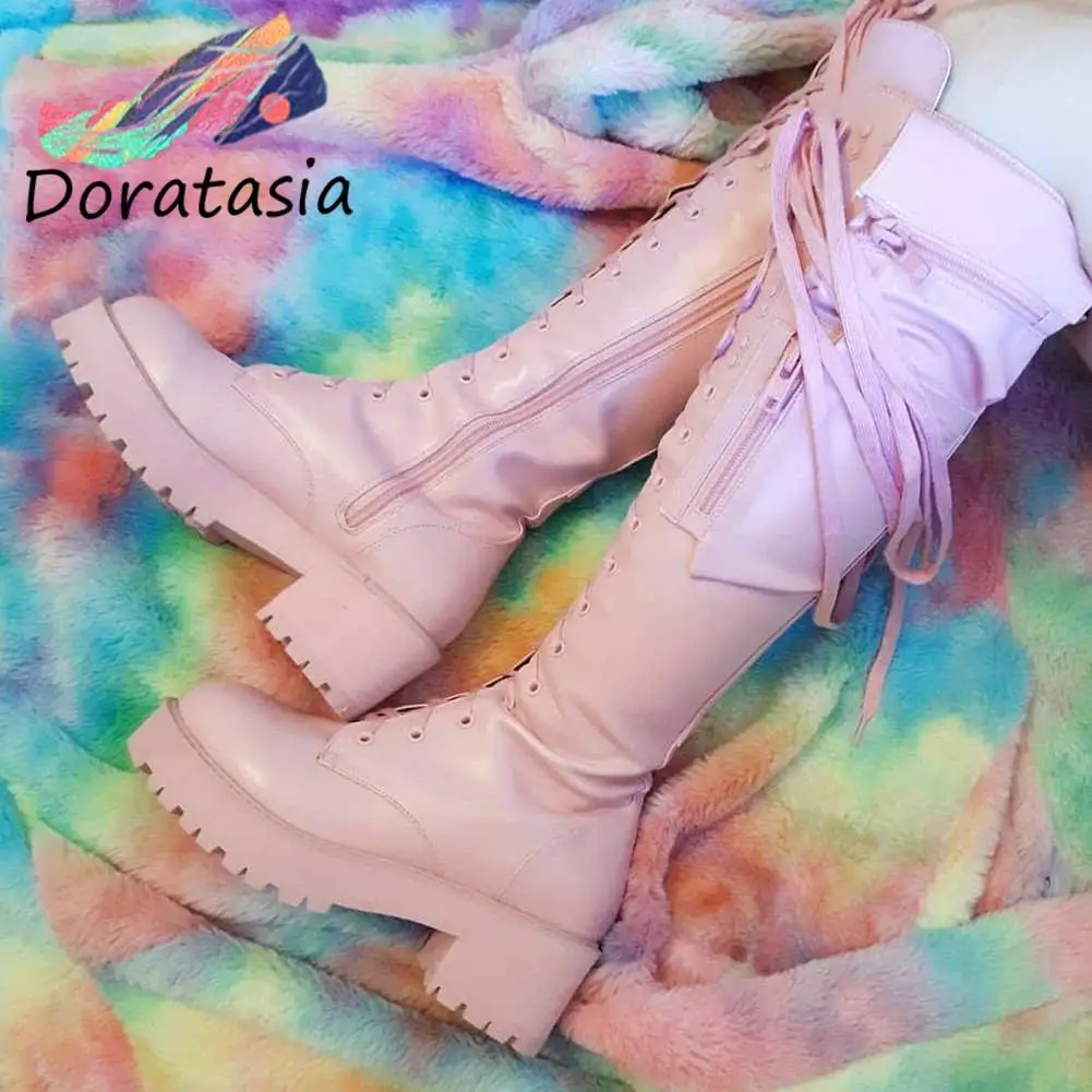 INS/Брендовые женские ботинки до середины голени на платформе в стиле панк, готика; Большие размеры 45