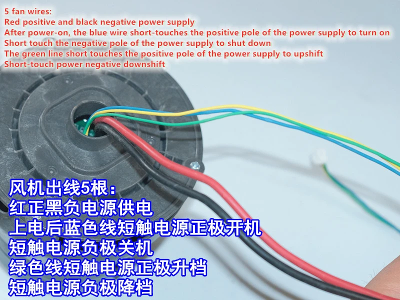 There are 5 outgoing wires of the motor, and the control operation is very simple, no additional input signal and other operations are required. The definition page of the wires has pictures and instructions. Simple use After directly powering on, the blue signal line will short-touch the positive pole of the power supply to turn on, and the short-touch negative pole will shut down. The green line is the gear signal line. Please see the picture for the specific wiring, please make sure that the positive and negative poles are not connected wrongly, otherwise the drive circuit will be burnt.