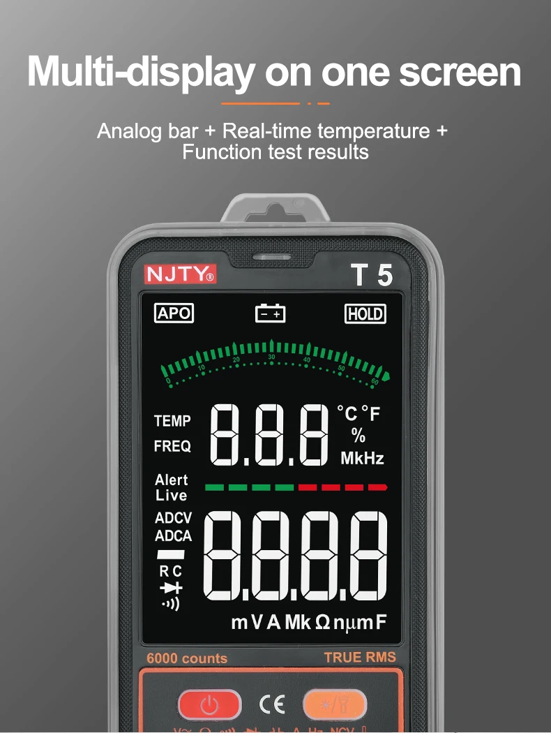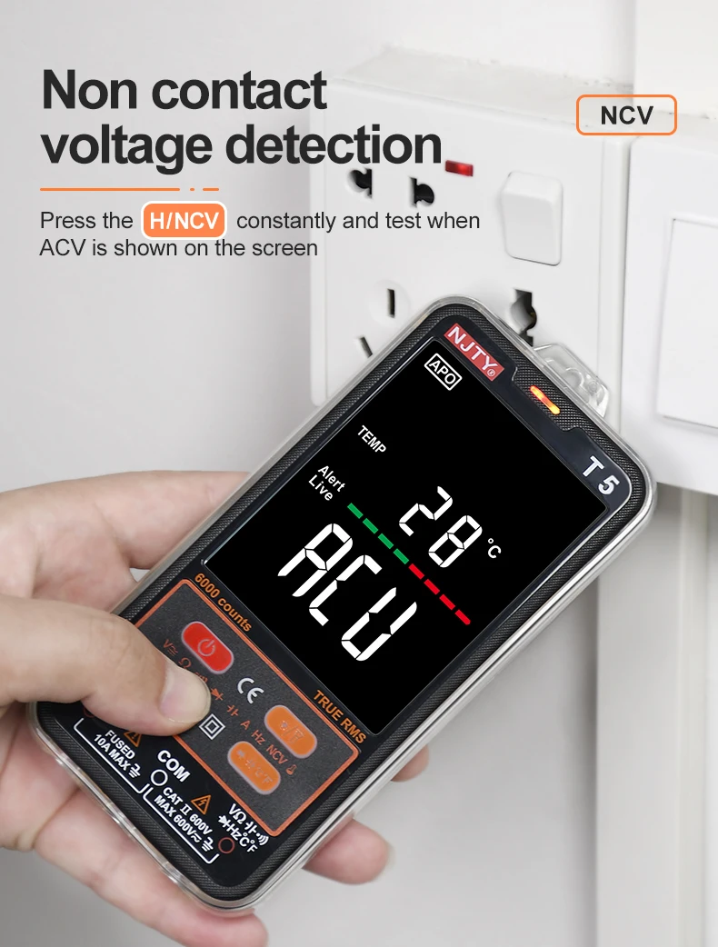 Профессиональный мультиметр цифровой автомобильный тестер Электрический вольтметр T5 умный мини Авто Диапазон 600 В AC DC измеритель напряжения тока
