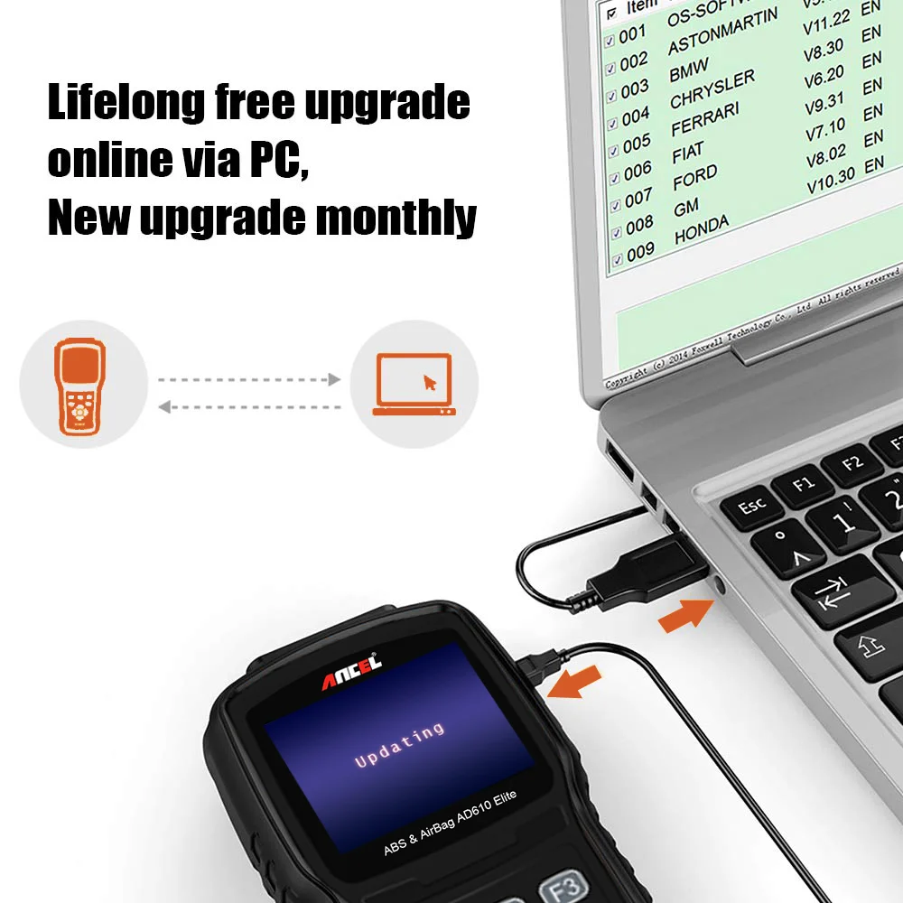 По сравнению с другим диагностическим инструментом подушки безопасности автомобиля, Ancel AD610 Elite может сбросить модуль управления подушки безопасности после замены подушки безопасности. Этот элитный сканер Ancel AD610-это просто идеальный диагностический инструмент сброса подушки безопасности для владельцев автомобилей, которые не могут ждать.