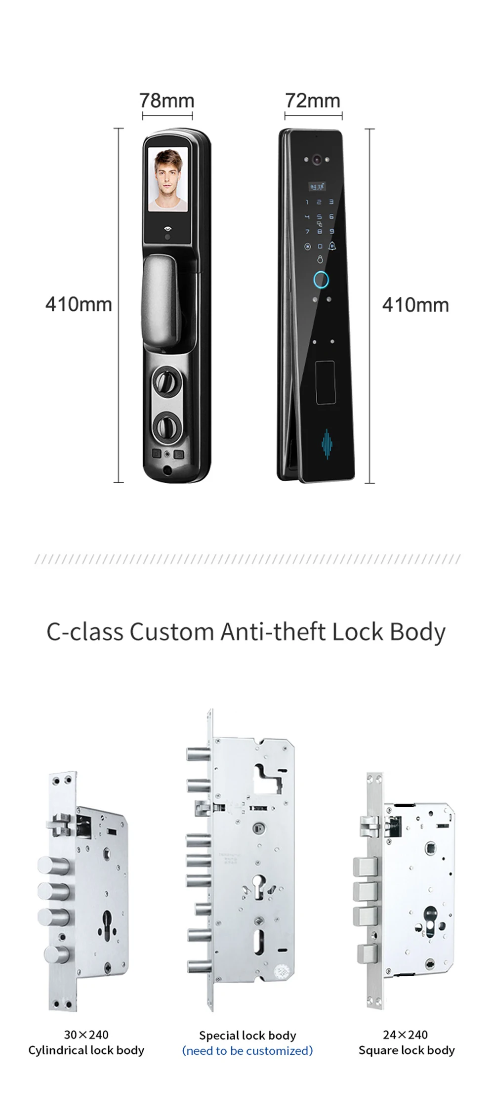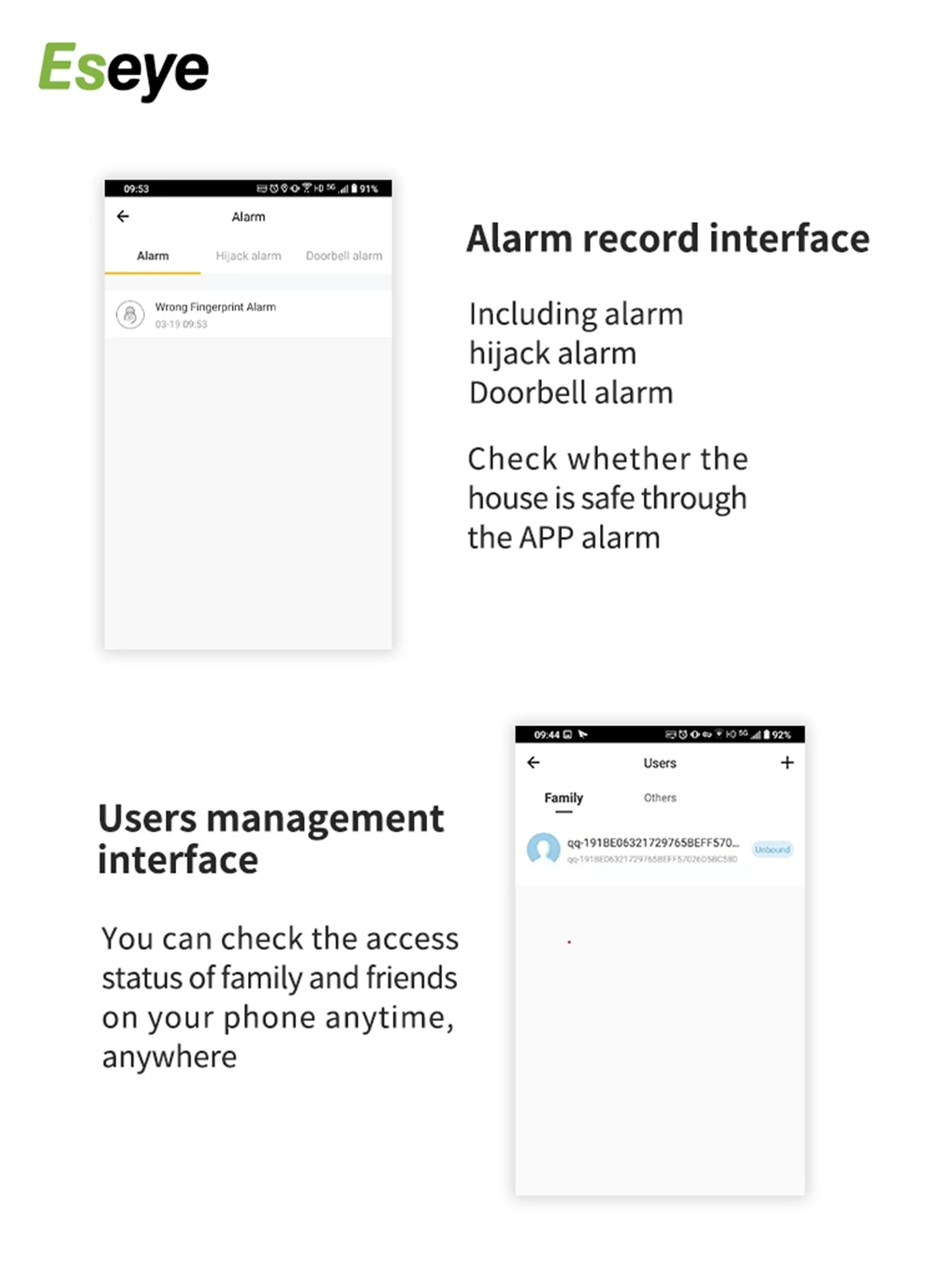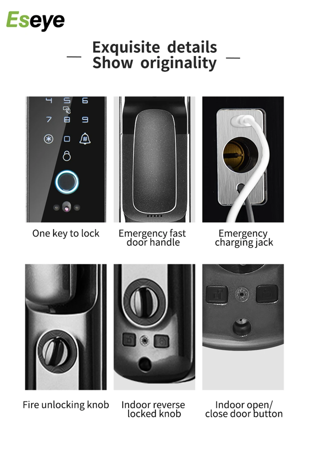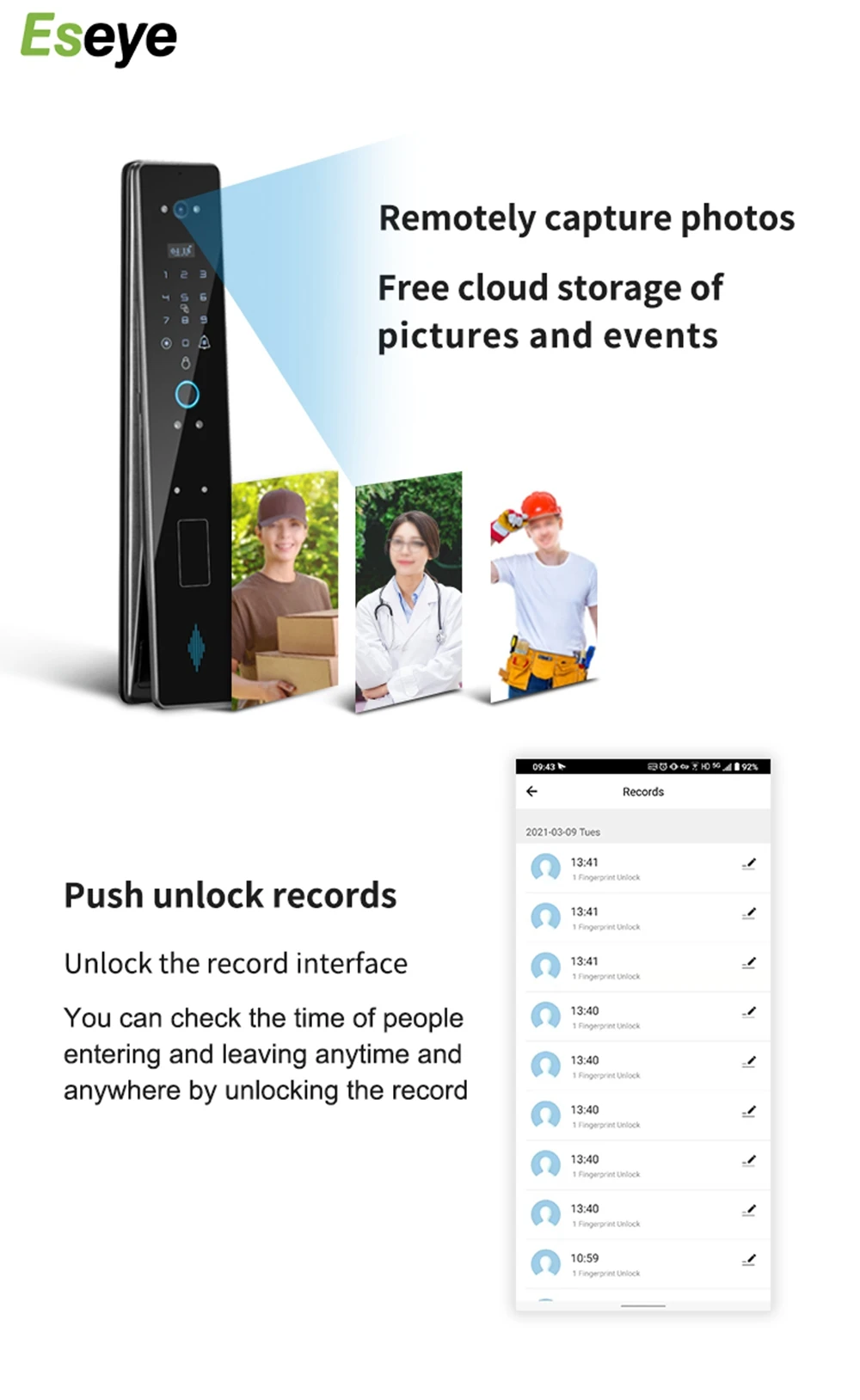 Преимущество: Автоматическая блокировка, незаконная разблокировать сигнализацию, Визуальный дверной звонок и дополнительная покупка Электронного дверного звонка не требуется, Удаленная разблокировка, защита паролем от подглядывания