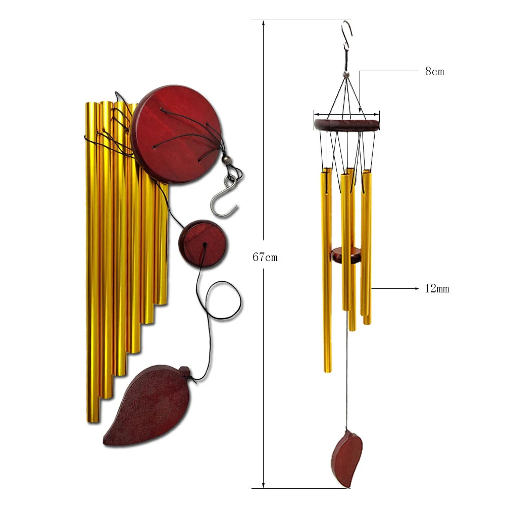 Состоит из круглой деревянной пластины и 6 алюминиевых трубок различной длины, ветряные колокольчики имеют прекрасное мастерство и хорошее качество.