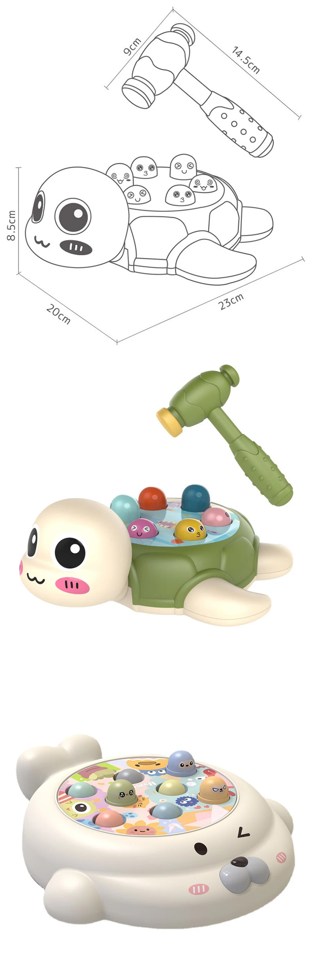 Он изготовлен из прочного АБС-пластика, без запаха и безопасен для игры, и молоток мягкий, который не повредит детям маленькие руки.