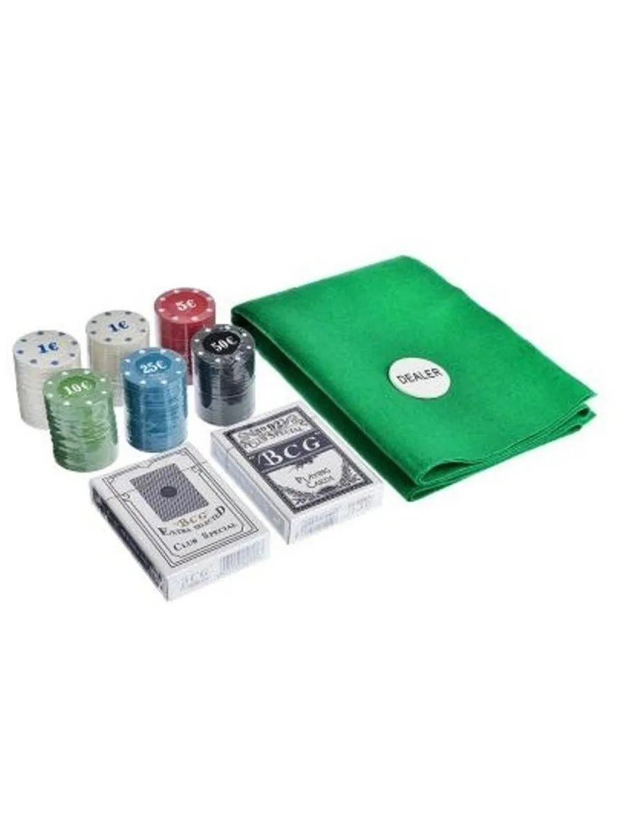Любите проводить время с компанией за игрой в покер? Тогда Набор для игры в покер Professional Poker Chips, 120 фишек с номиналом для вас. С ним игра превратится в увлекательный квест, и доставит вам и вашим друзьям незабываемые впечатления. Все комплектующие находятся в компактном жестяном коробе, поэтому его можно брать с собой в дорогу. Состав набора: Фишки номиналом 1 - 20 шт., фишки номиналом 5 - 20 шт., фишки номиналом 10 - 20 шт., фишки номиналом 25 - 20 шт., фишки номиналом 50 - 40 шт., фишка Dealer, 2 колоды карт по 54 шт. Такой набор станет отличным подарком для любителей покера. СУКНО ДЛЯ ПОКЕРА В ПОДАРОК!!! Сукно для покера выполнено из качественной ткани, на которой себя превосходно ведут карты и фишки. Зеленый цвет сукна отсылает к традициям казино и способствует созданию соответствующей атмосферы. На поверхности ткани имеется нанесенная разметка.