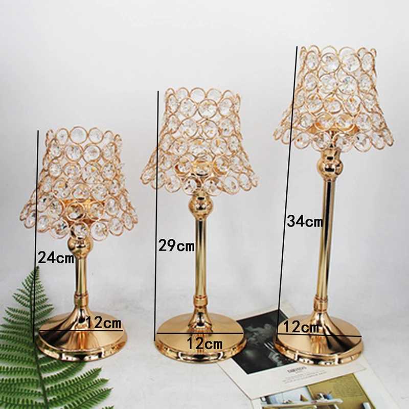 Золотой столб Настольная лампа Кристалл Votive подсвечник центральный для свадебного украшения Свеча фонарь