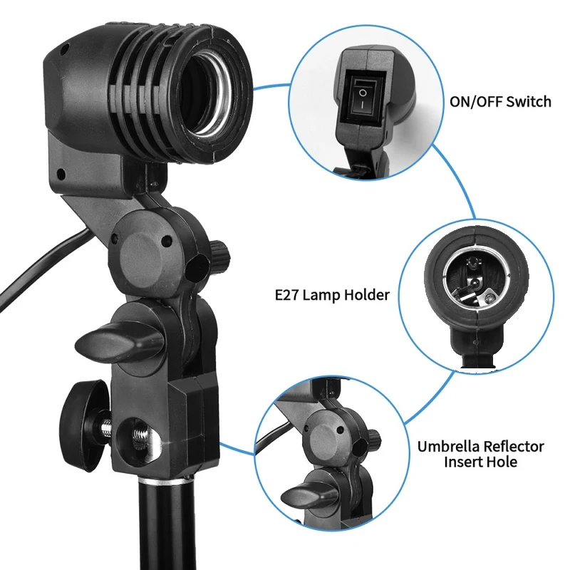 Lamp Bulb Holder E27 Socket Single Head Flash Umbrella Bracket Photo Lighting Bulb Holder Mount Photography Studio Accessories