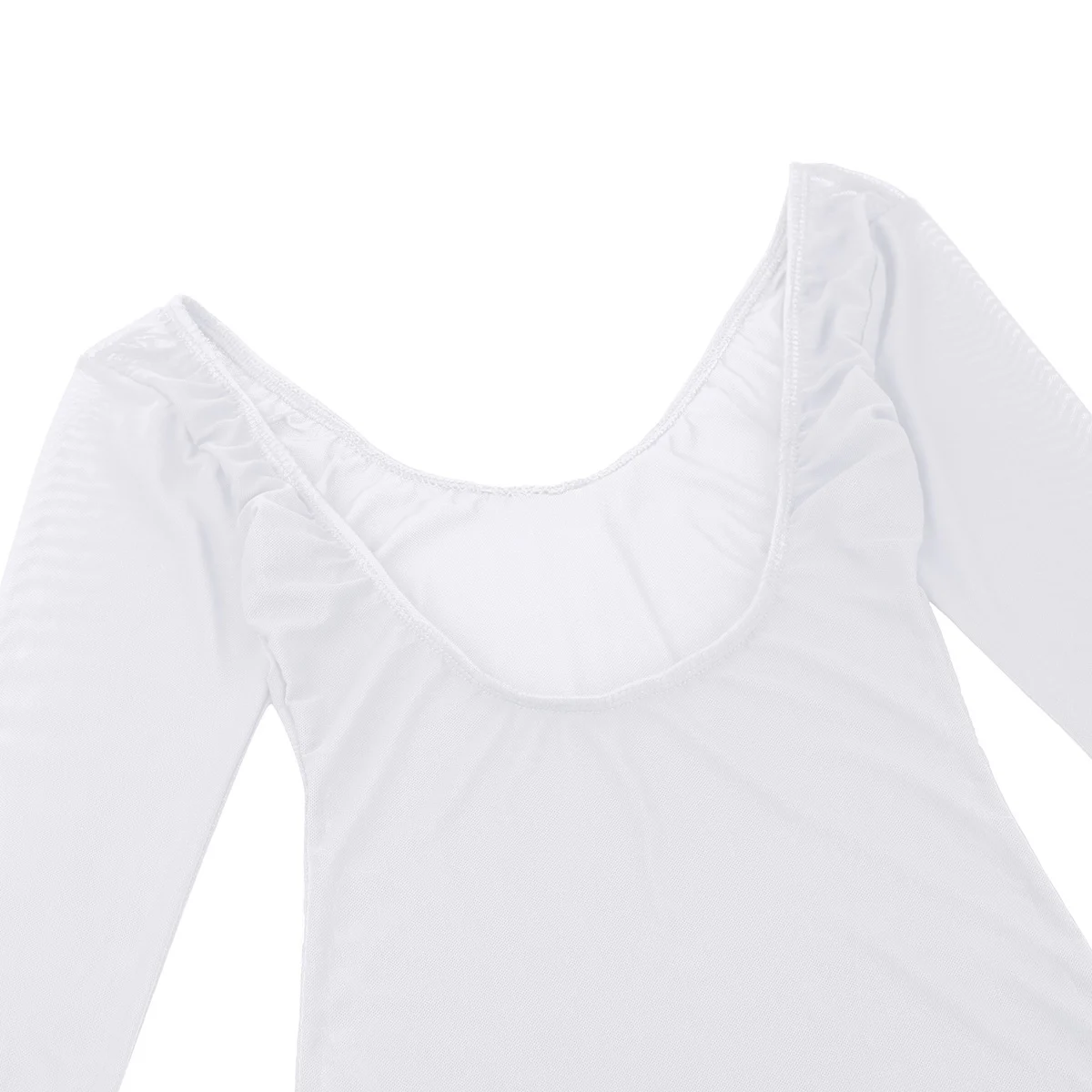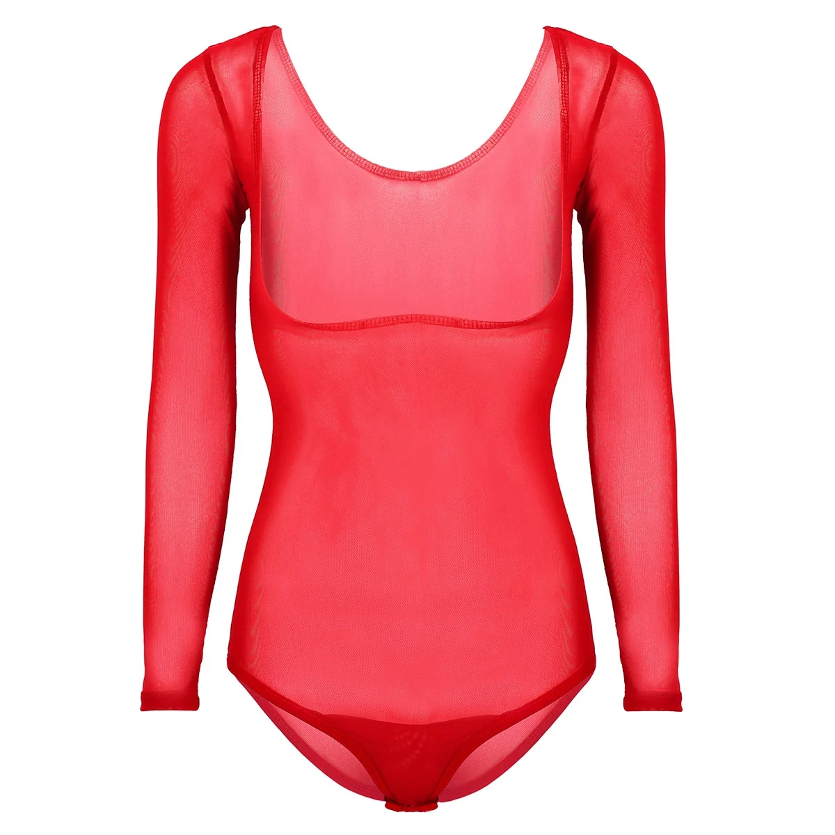 Long sleeve, open bust, high cut legs, mesh see throuth sheer design, crotch with snap button closure.