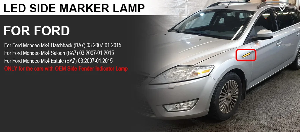 2Pcs For Ford Mondeo Mk4 2007 2008 2009 2010 2011 2012 2013 2014 2015 Dynamic Sequential LED Side Marker Light Turn Signal Lamp