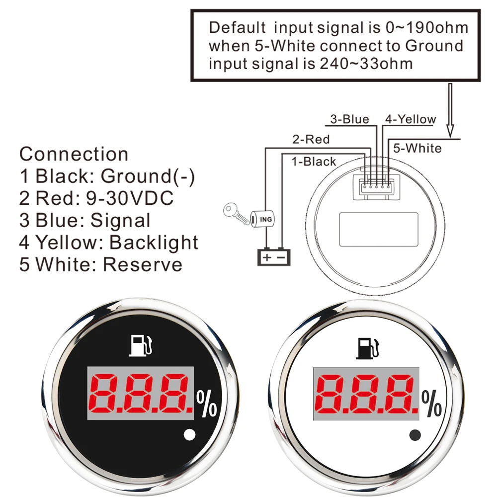 52 мм водонепроницаемый IP67 Автомобильный датчик уровня топлива для лодки с сигнализацией 0-190 Ом датчик уровня топлива индикатор масляного бака подходит для морского грузовика RV