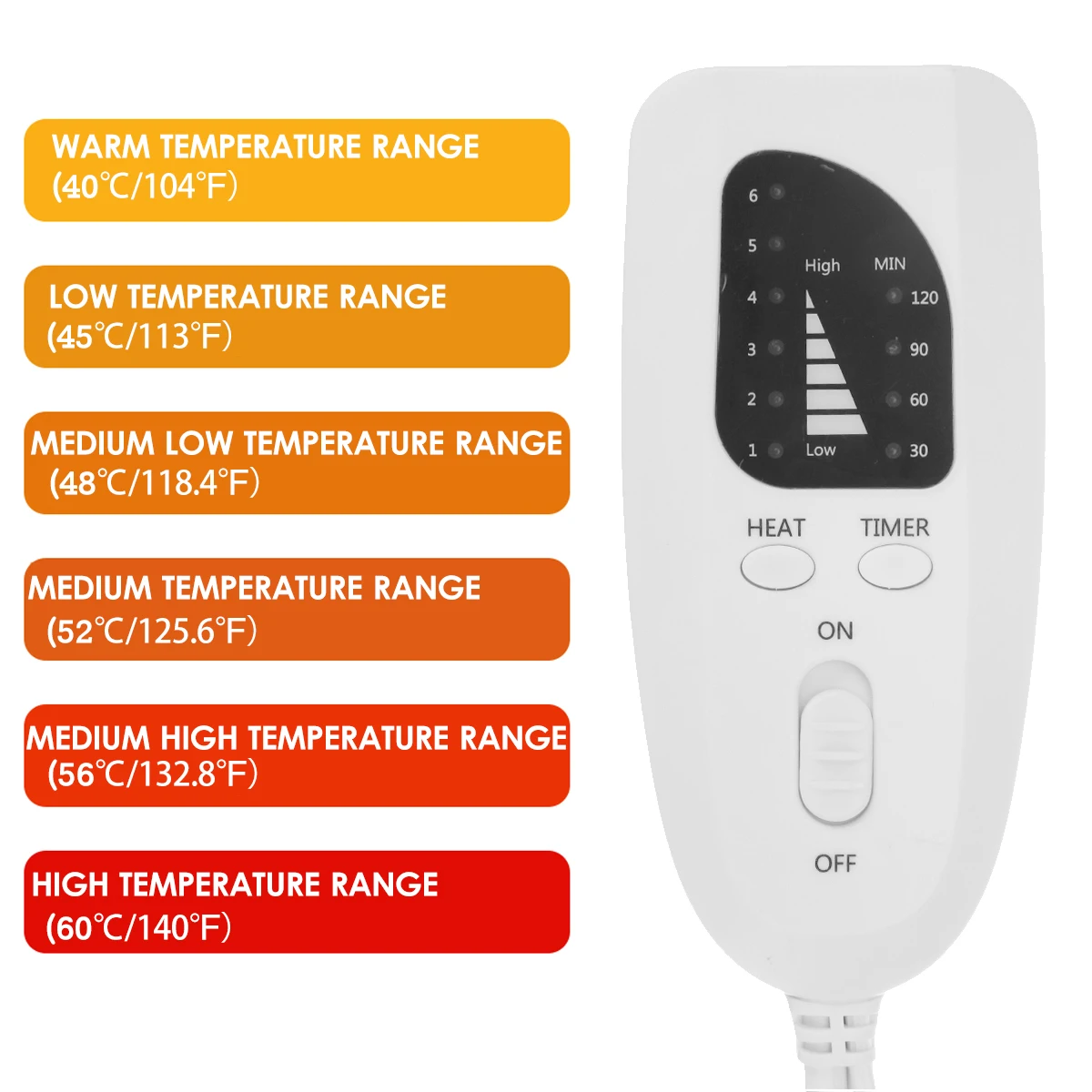 Достоинства: Эта электрическая грелка-отличный выбор для снятия боли, а также для обеспечения большего тепла на шее и плечах, а также на талии и животе. Сохранение постоянного тепла, помогает обеспечить успокаивающее облегчение боли в мышцах и других болях и болях. Влажный вариант, меньше обезвоживает кожу, позволяет теплу лучше впитывать и быстрее избавлять от боли. 2 часа автоматическое выключение, защищает людей с низким уровнем осведомленности, таких как дети и пожилые люди.