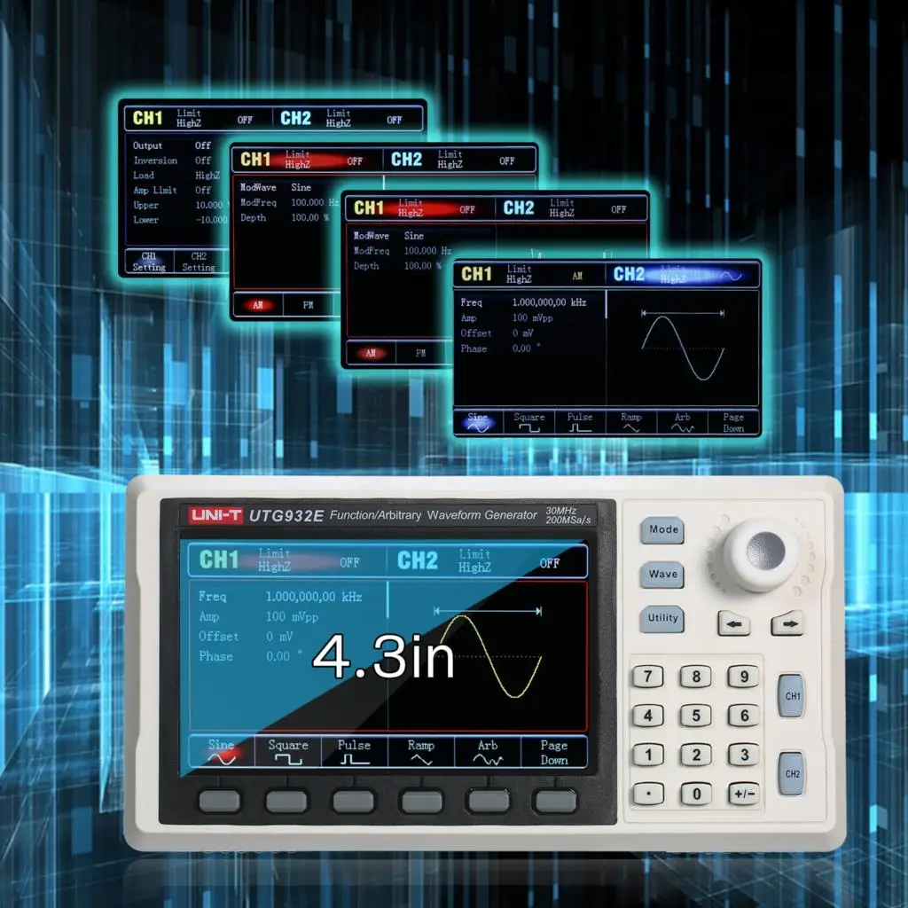 1. Два канала эквивалентной производительности. Диапазон выходной частоты: 1 μhz-30MHz. Параметры можно задать повторяющимся образом на каждом канале. Различные формы выходного сигнала: синус, квадрат, пульс, пандус, шум, постоянный ток, произвольный.