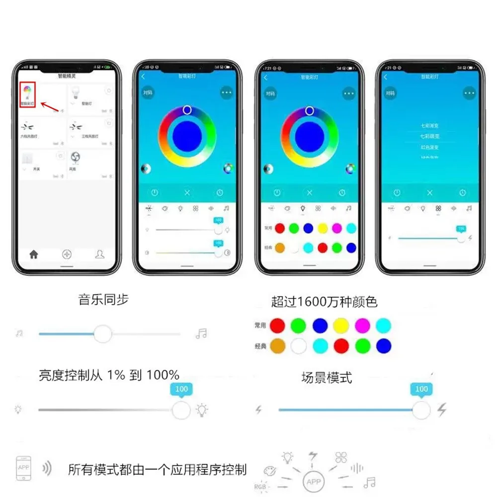 1. Приложение Smart Bluetooth контролирует цвет, 16 миллионов цветов, 20 режимов сцены.