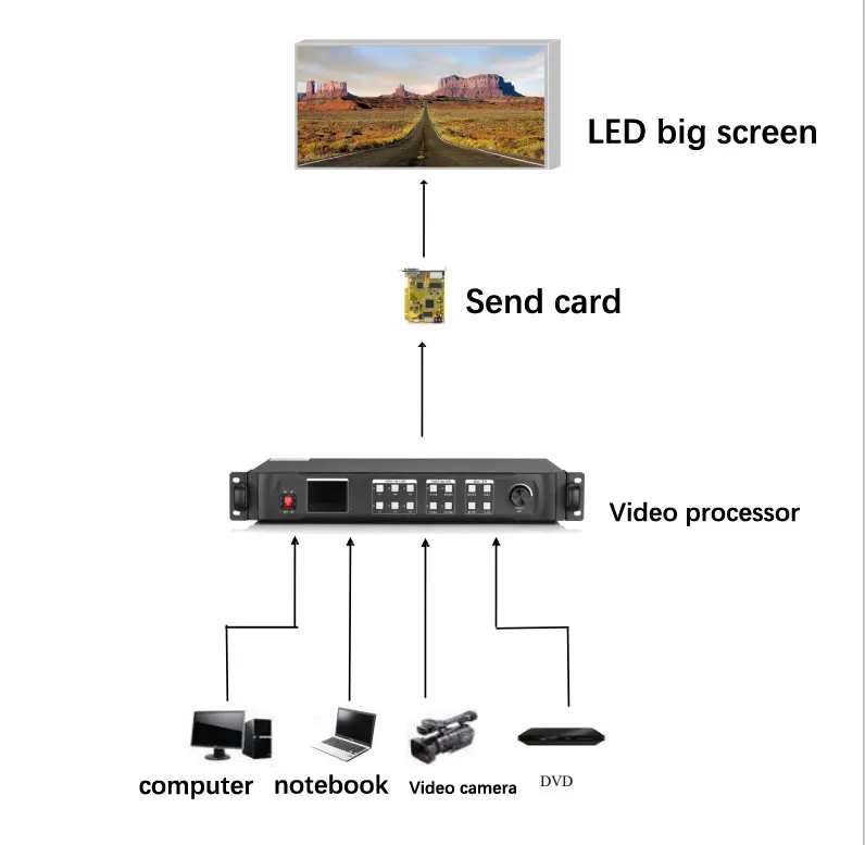 Светодиодный видеопроцессор, уникальная функция регулировки яркости, уменьшает яркость, решенную после потери слоев, так что более точная цветопередача.