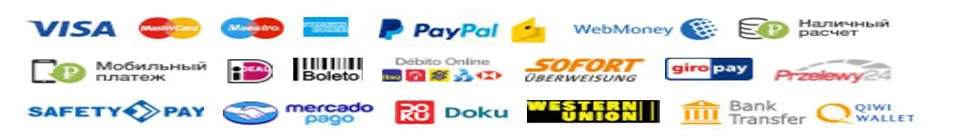 Мы поддерживаем следующие способы оплаты. Все оплаты выполненные на AliExpress обрабатываются сервисом Alipay.