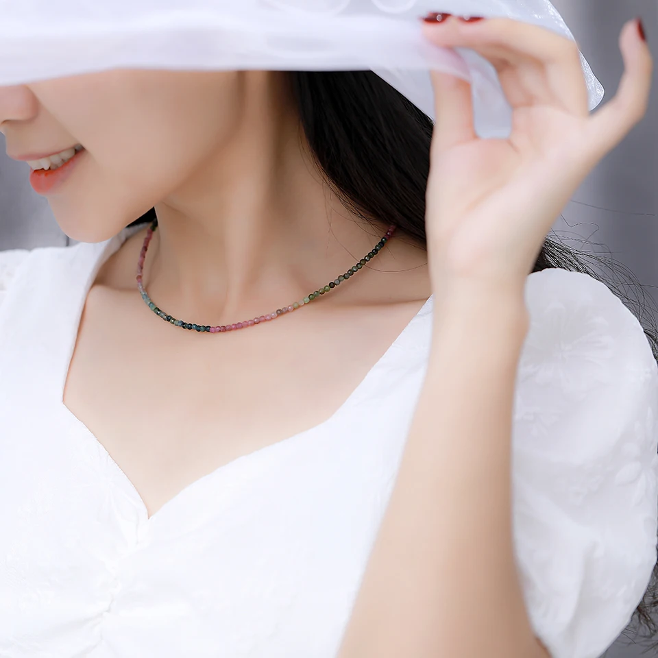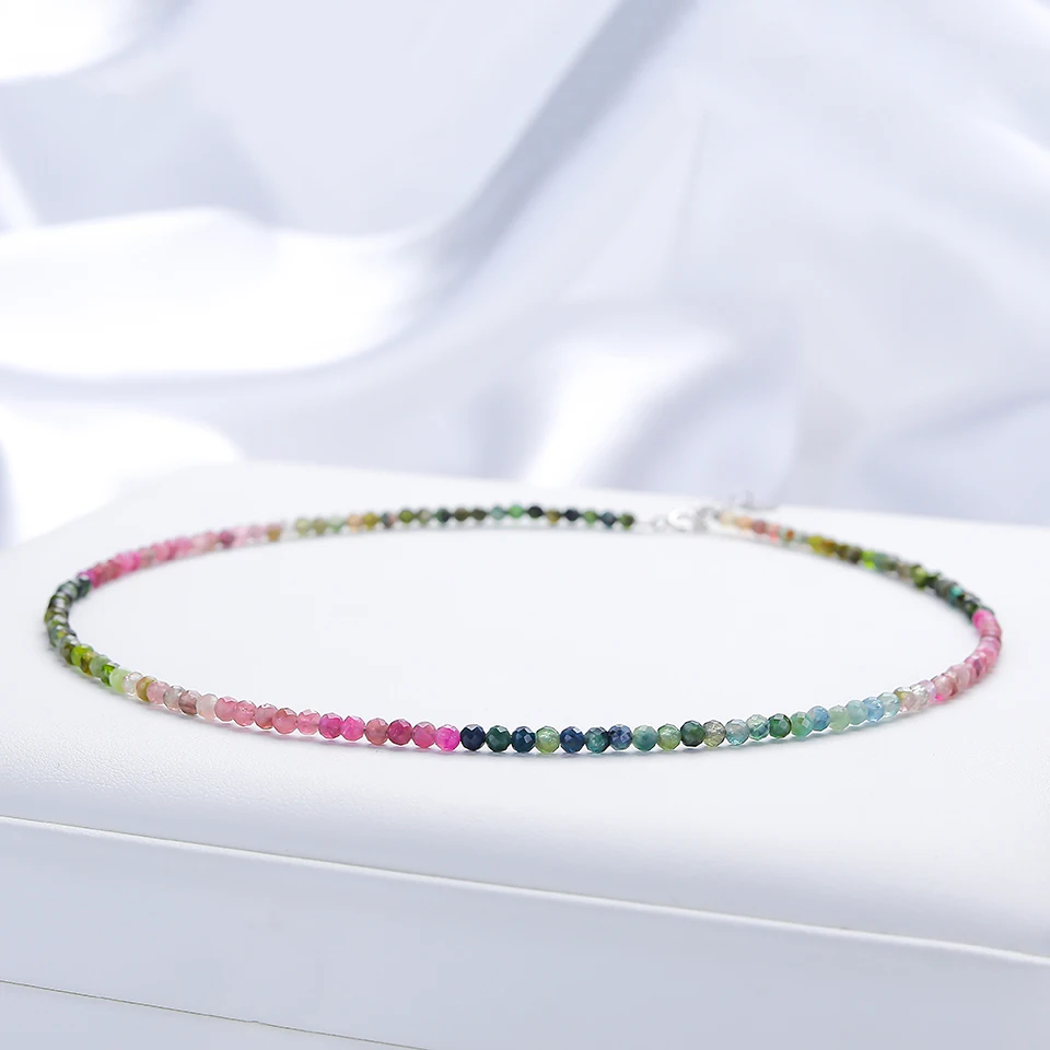 3 мм натуральный камень Турмалин Ручная работа ожерелье для женщин подарок Свадебная вечеринка ювелирные изделия Серебро 925 пробы чокер