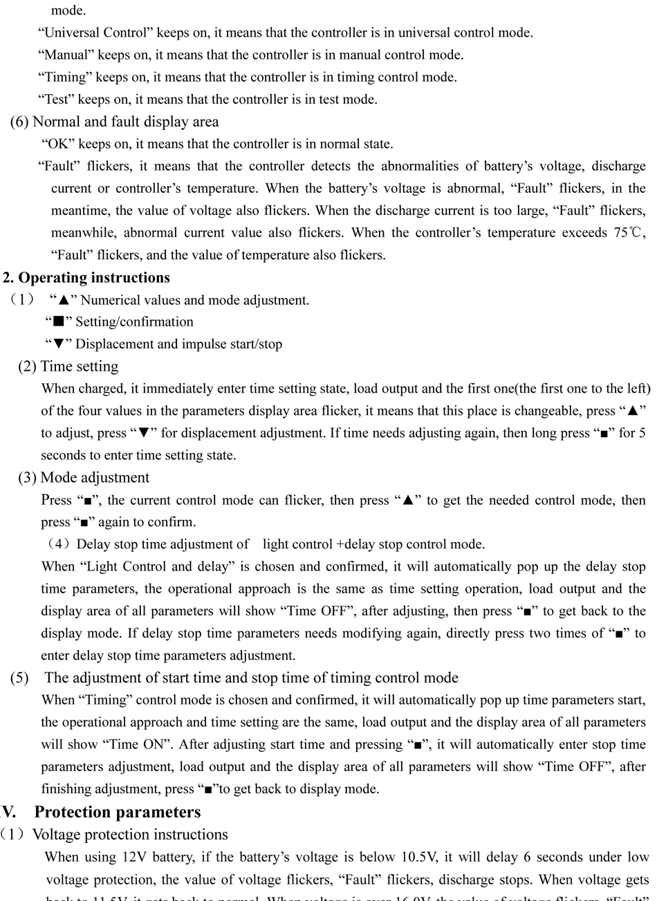 (5) Инструкции по настройке напряжения при зарядке: после подключения аккумулятора, после установки часов и экономии, длительное нажатие «▲» в течение 3-5 секунд, экран отображает L ** V как плавающее напряжение зарядки, которое может быть отрегулировано нажатием «▼»; Короткое нажатие снова «▲» H ** V для увеличения напряжения зарядки, Который может быть отрегулирован нажатием «▼»; Вскоре нажмите «▲» снова. F ** V-это низкое напряжение отключения постоянного тока, которое может быть отрегулировано нажатием «▼»; после установки нажмите «▲» в течение 3-5 секунд для сохранения и выхода.