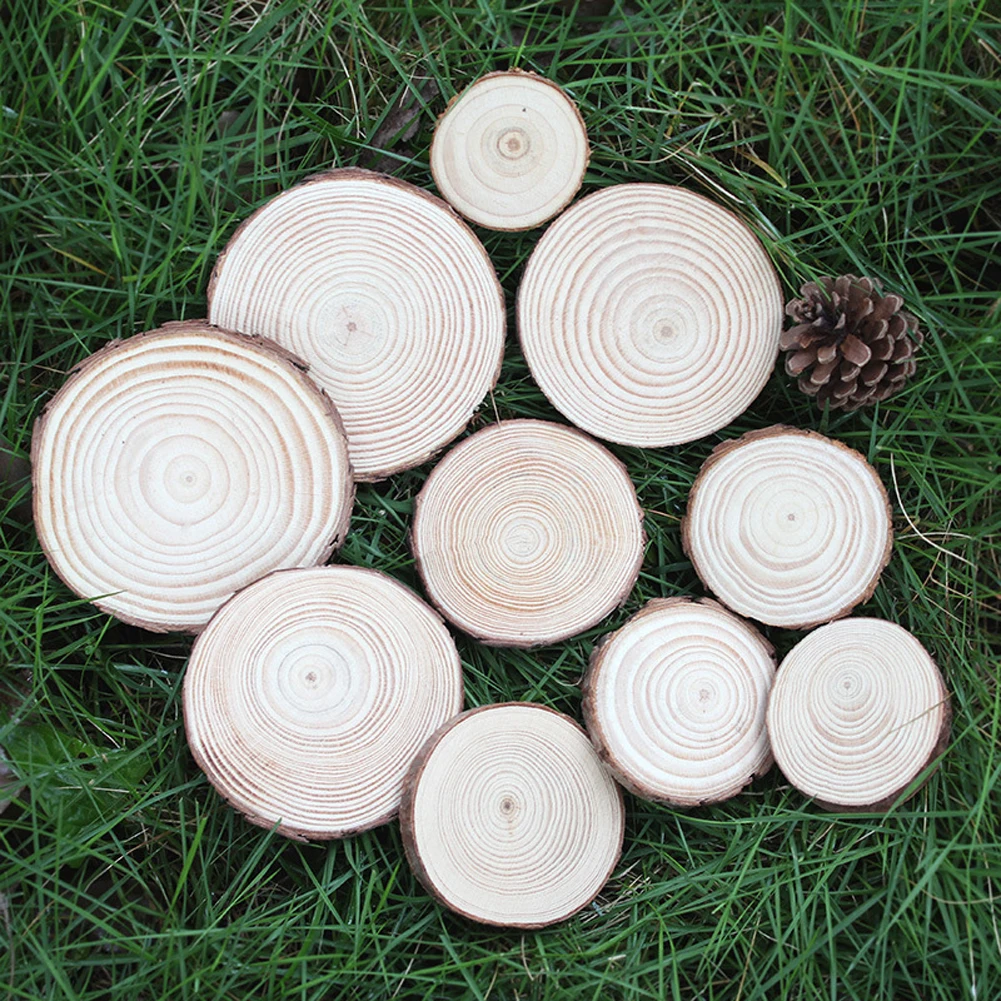 Срезы дерева изготовлены из натуральной сосны с корой, и каждый ломтик предварительно шлифуют и полируют. Естественно обработанный, безопасный, экологически чистый, экологически чистый.