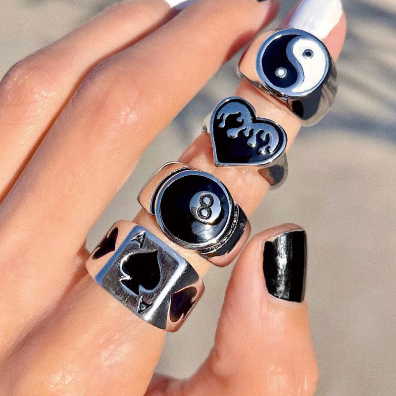Пламя Любовь Сердце квадрат Инь Ян кольцо "игральные кости"