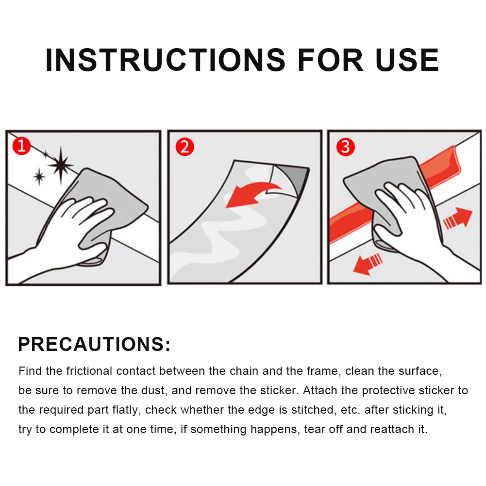 Найдите фрикционный контакт между цепью и рамой и очистите поверхность, чтобы удалить пыль, оторвите ее и приклейте. Равномерно приклейте защитную ленту в нужное положение, проверьте, прошит ли край после наклеивания, и попробуйте закончить его в одно время. Чехол в любой ситуации, Оторвите и приклейте снова.