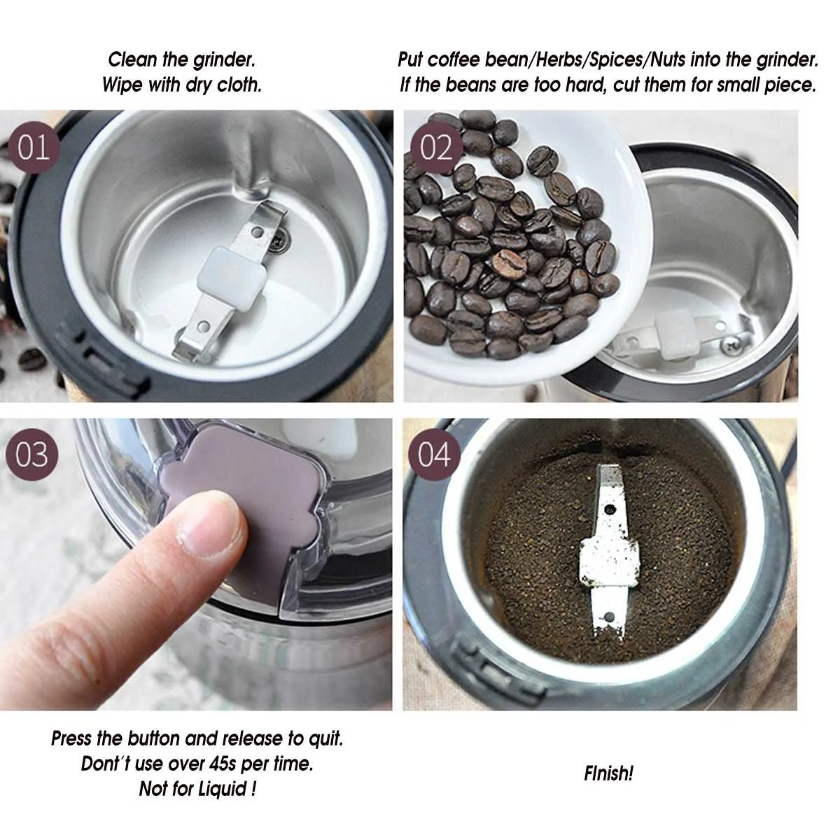 1. Высокая эффективность, измельчение всех видов мозолей/зерен/трав/специй/орехов/кофейных зерен и т. д.