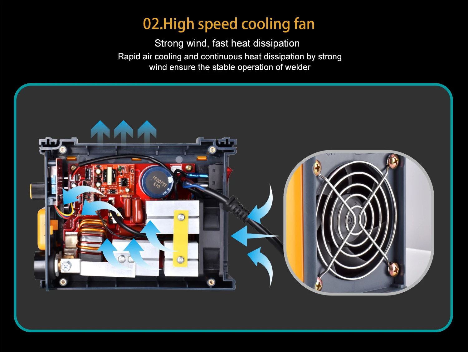 Высокая эффективность охлаждения и выхлопной технологии, 3 отверстия разработаны, чтобы помочь машине быстро охладить во время эксплуатации. Более длительный срок службы.