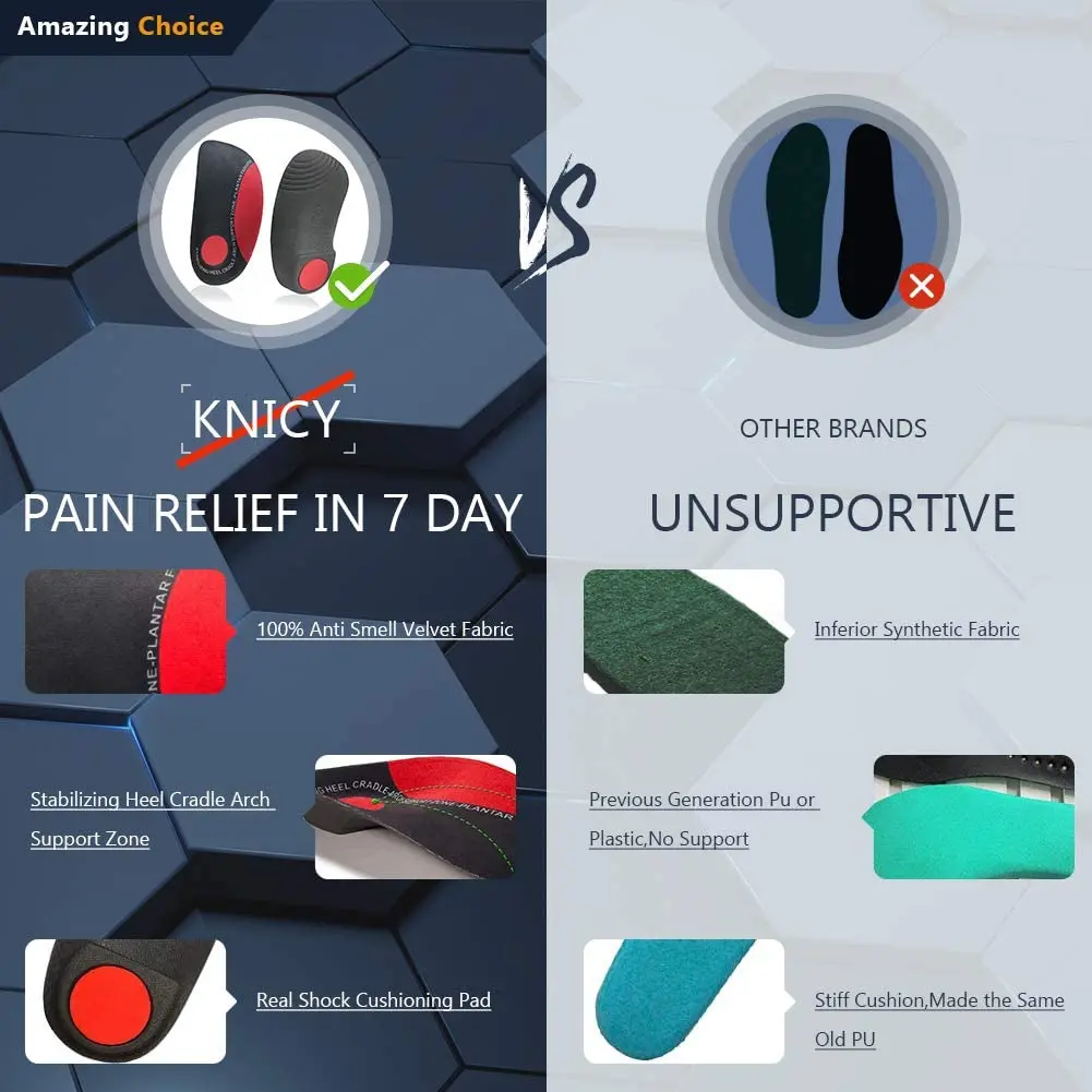 ★Легко менять обувь:Благодаря тонкому и весовому дизайну светильник, стельки длиной 3/4 могут удобно поместиться в большинство туфель. Дышащий верхний слой, противоскользящий материал делает его стабильным в вашей обуви. Эти ортопедические стельки отлично подходят для спортивной обуви, повседневной обуви, модельных туфель, холста, кроссовок, рабочей обуви и ботинок.