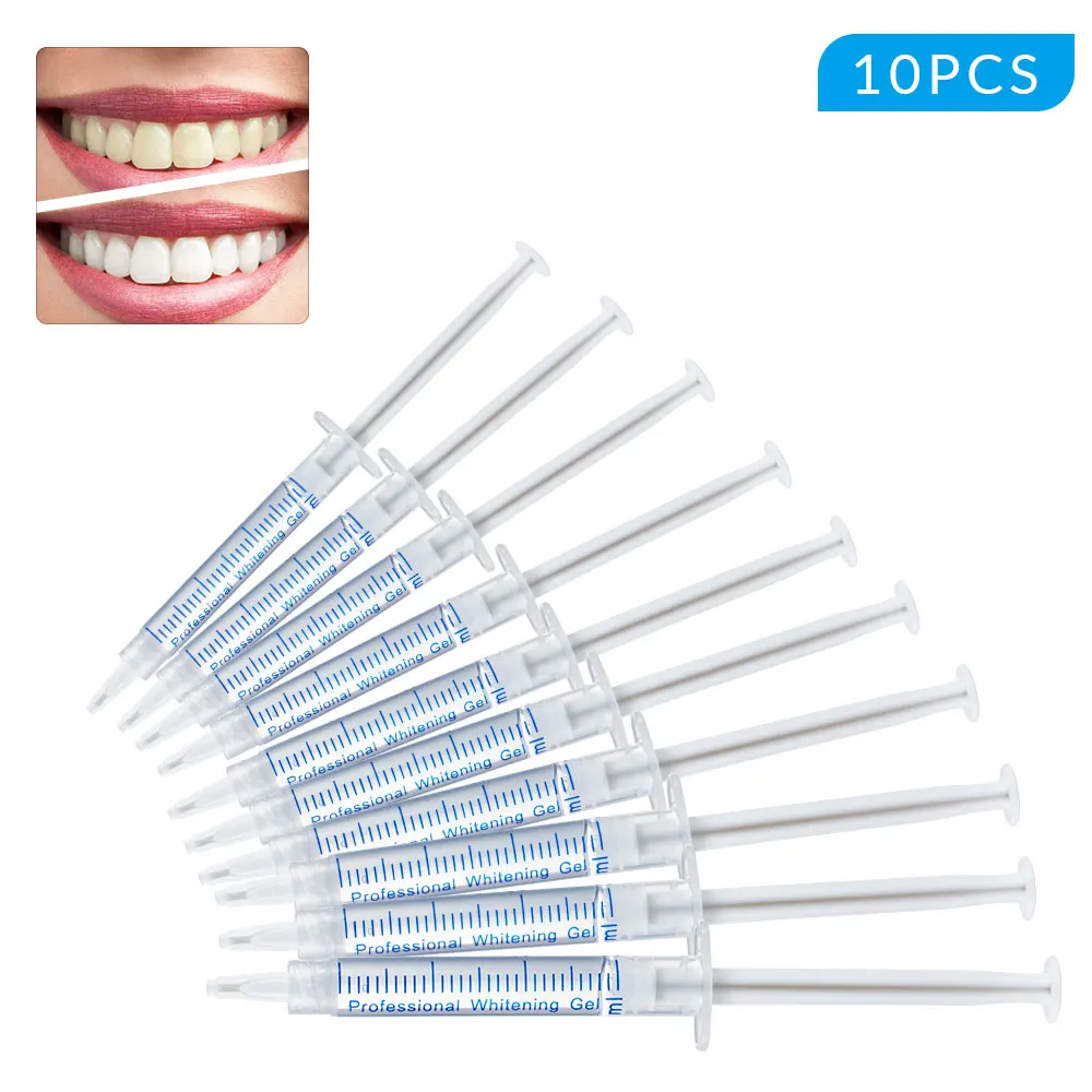 -Включает 3*3 мл/6*3 мл гель-шприцы для отбеливания зубов. Отбеливающий гель включает в себя 20/40 драпировки (или 20/40 дней отбеливания) в тех случаях, когда 0,3 мл гель используется в лечение в соответствии с указаниями.
