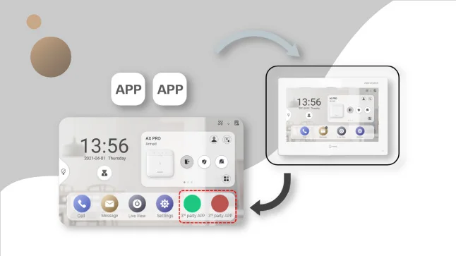 Со встроенной системой Android, внутренняя станция имеет легкость интеграции с сторонними вечерние приложения. Помимо Hik-Connect, пользователи могут установить до двух других приложений Android на внутренней станции и наслаждаться удобной работой с визуализированными интерфейсами.