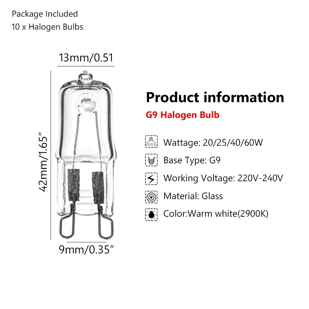 Много применений освещения. Подходит для всех цоколей G9, включая люстры, тщеславие для ванной комнаты, бра, потолочный вентилятор, под освещением шкафа и т. д.