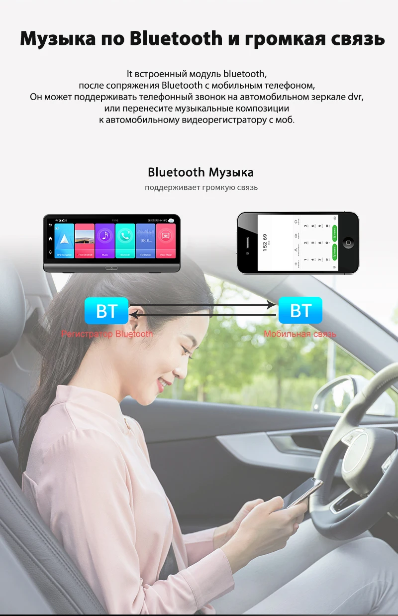 Bluetooth hands-free, После сопряжения bluetooth между видеорегистратором и смартфоном, вы можете совершать и принимать звонки непосредственно с самого видеорегистратора со встроенным микрофоном и динамиком.