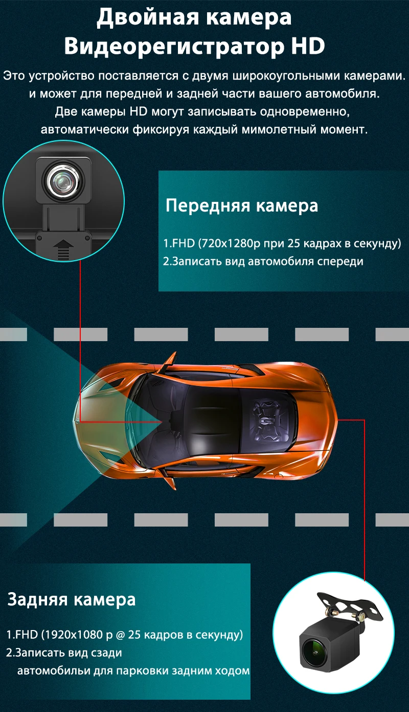 -Фото 720p и видеосигнал 10s будут отправлены в ближайшее время (1-5s время) на ваш мобильный телефон, если произойдет столкновение автомобиля