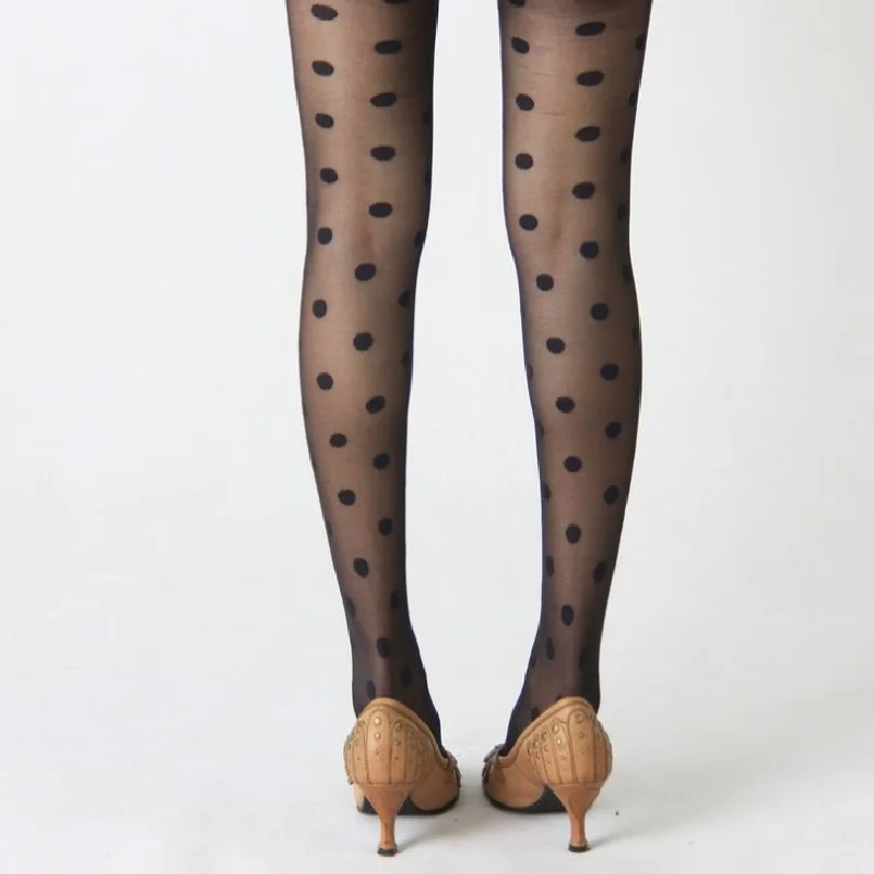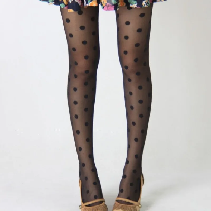 Сексуальный черный из прозрачной ткани кружевные чулки в горошек для женщин.