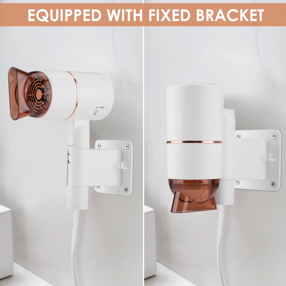 Сорок четыре корпуса складываются, их легко хранить и переносить. Его можно использовать дома или в бизнесе. Он оснащен фиксированным кронштейном, чтобы повесить фен на стену.