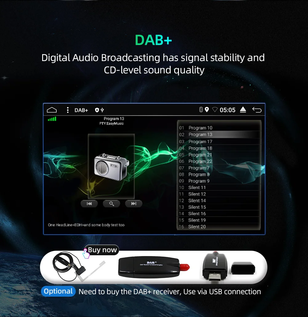 Дополнительно: OBD,DAB,DSP,DVR,TMPS, камера, 3G ключ, 4G ключ, датчик парковки, цифровой ТВ-бокс, специальный кабель, внешний микрофон