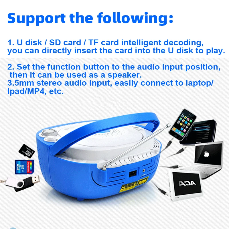 1. Принесите свою музыку в любом месте-наш компактный размер и легкая конструкция нашего портативного cd-плеера с его складной ручкой позволяет легко взять его в любом месте и воспроизводить любимую музыку. Будь то в вашей домашней гостиной, кухне, тренажерном зале, открытом кемпинге, классе йоги, классе танцев или в любом другом месте, вы можете себе представить, что ваша музыка с вами!
