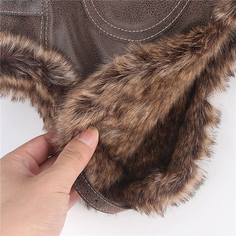 Зимняя женская теплая шапка-ушанка, Мужская летчик-бомбардировщик, шапка-трапеция из искусственного меха, кожаная зимняя шапка с ушками