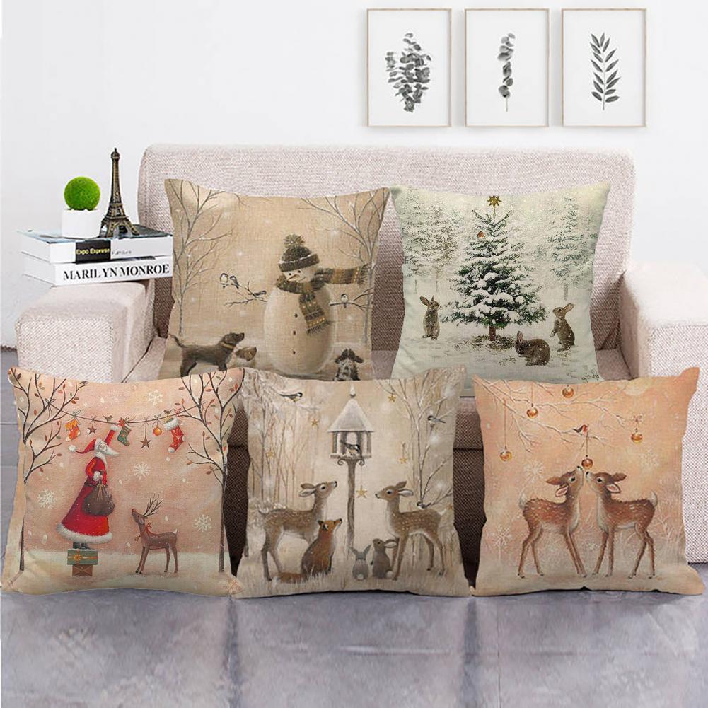 Мягкая Рождественская наволочка с мультяшными рисунками, льняная Рождественская подушка, чехол, украшение, домашний подарок, подушка для дивана