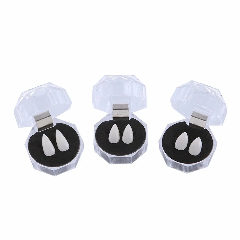 Упаковка: каждая пара упакована в небольшую прозрачную коробку, которую легко носить с собой и хранить Искусственные зубы в вечерние дни на Хэллоуин, так что искусственные конечности вампира могут быть повторно использованы много раз