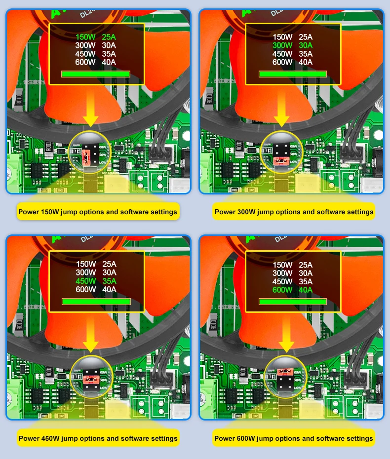 Когда этот продукт имеет различные мощности, вам нужно установить перемычку, пожалуйста, выполните следующий метод для установки!