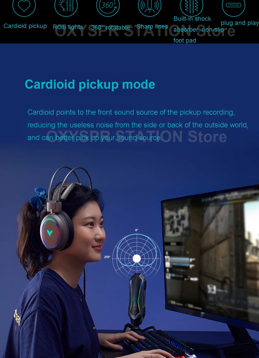Тип товара: кардиоидный игровой микрофон с подсветкой RGB