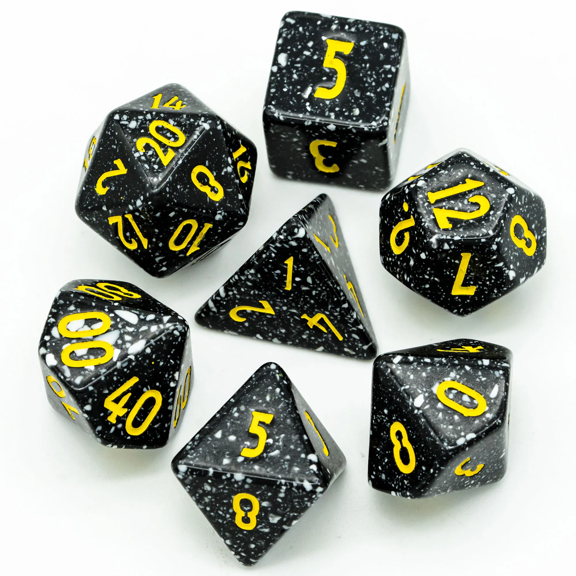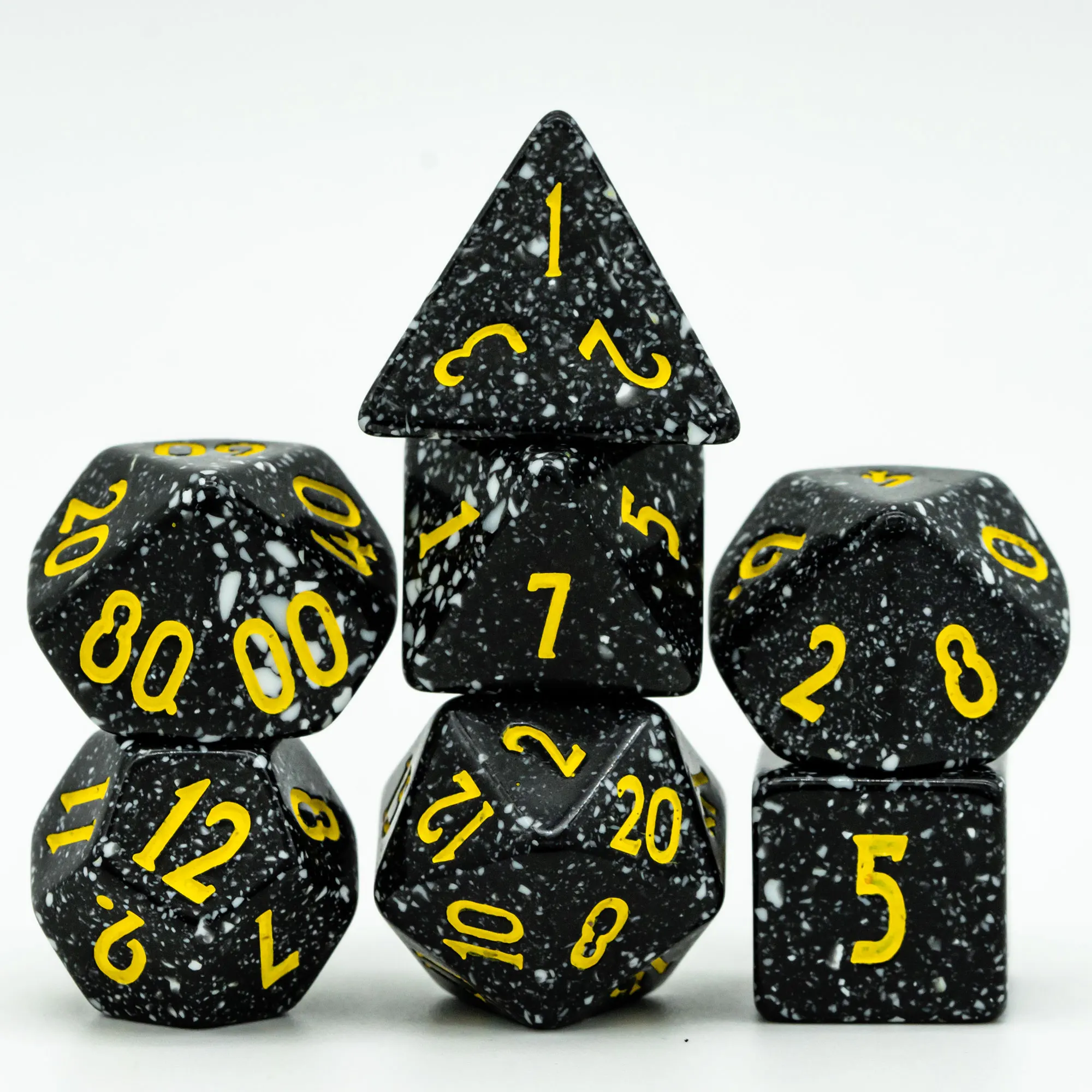 1. Вы получите набор из 7 игральных костей с небольшим мешочком. Изготовлен из натуральной смолы, ощущение и текстура очень идеальны.