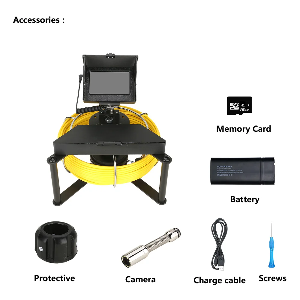 Комплект змеиной камеры для осмотра труб и канализационных труб с 12 В 8500 мАч, литий-ионный аккумулятор в комплекте
