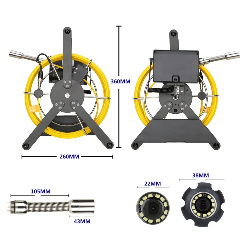 Промышленная эндоскопическая система сливных канализационных трубопроводов с HD 1200TVL Водонепроницаемость высокой четкости IP68 #304 камера из нержавеющей стали + Наконечник Зонда + Угол обзора 145 °, что делает его ясным, когда вы проверяете некоторые места трудно часы. 8 шт. регулируемых светодиодов для освещения труднодоступных инспекционных зон. Проверки будут более четко видны в темной среде.
