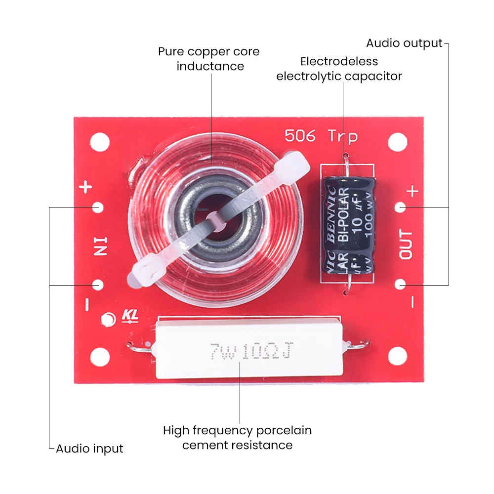 1,2 мм/0,05 дюймов Большой диаметр провода индуктивности и высокой Выдерживаемое Напряжение конденсаторов и высокой мощности Керамический резистор используется для 1-15 дюймов полный диапазон частот. Просто выберите соответствующий зазубренный фильтр в соответствии со значением сопротивления вашего собственного громкоговорителя.