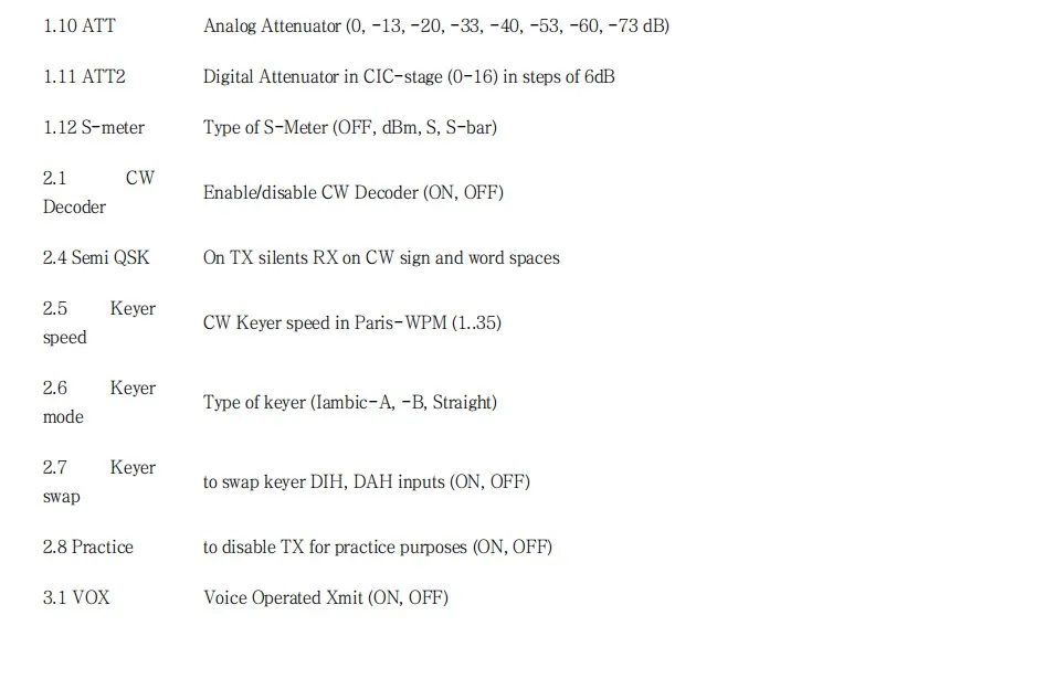 3. Из-за чрезвычайно простой аппаратной структуры чувствительность будет ослабляться с увеличением частоты, поэтому рекомендуется выключить AGC на высокой частоте и установить att2 до 0. Чувствительность также снижена на частотах, поддерживаемых не любительскими радиочастотами.