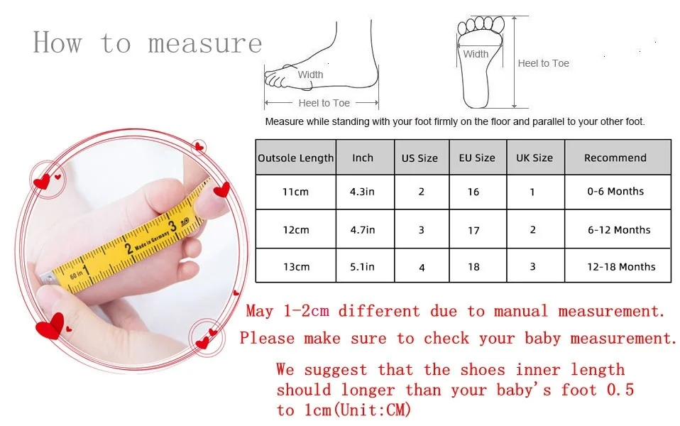 4. Длина нашей обуви для малышей рассчитывается на длину низа в сантиметрах, пожалуйста, покупайте в соответствии с вашими потребностями.