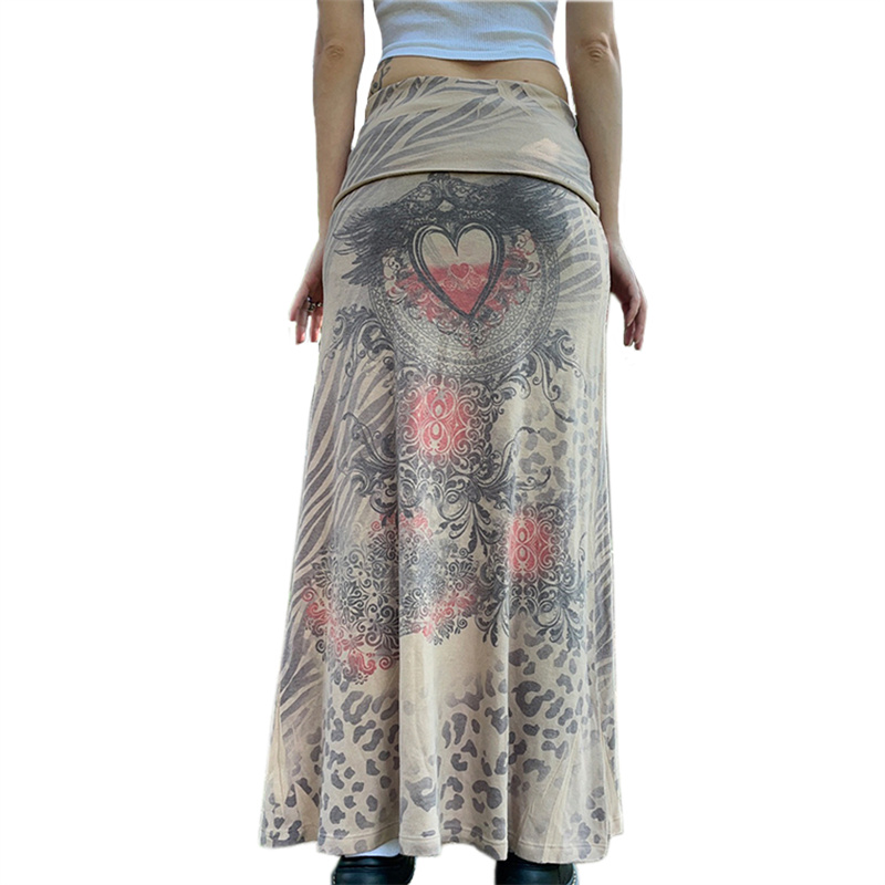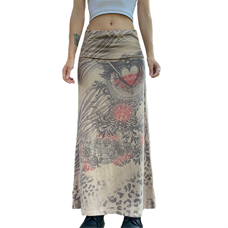 Hirigin, винтажные, Осенние, с принтом сердца, гранж, сказочное ядро, длинные, макси юбки для женщин, мода Y2K 90s, эстетическая, высокая талия, одежда, юбки