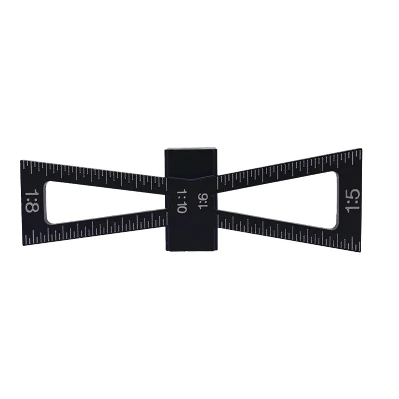 The marker is capable of marking a dovetail 1" in length and has two ratios of width to height of 1:5 and 1:8 The 1;5 ratio is typically used in softwood and the 1:8.