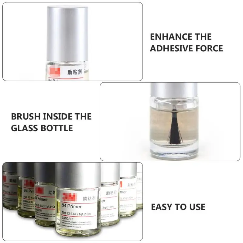Профессиональный Авто Клей промоутер, изготовленный из высококачественного материала, практичный и прочный. Внутри стеклянной бутылки находится кисть, что делает ее простой в использовании для вас. Портативный размер с емкостью 10 мл легко носить с собой. И поверхность склеивания должна быть чистой и сухой перед использованием нашего продукта.